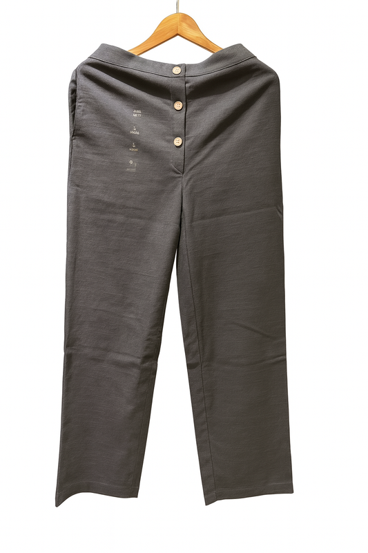 Women’s Grey Khadi Palazzo Pants – High Waist Wide-Leg Trousers | Handwoven Cotton