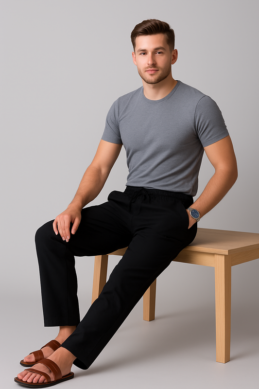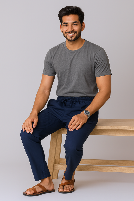 100% Cotton Solid Pyjama for Men with Elastic Waistband & Handy Pockets
