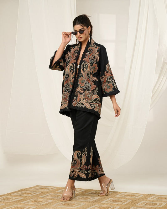 Elegant Black Embroidered Co-ord Set for Women | Indo-Western Designer Outfit