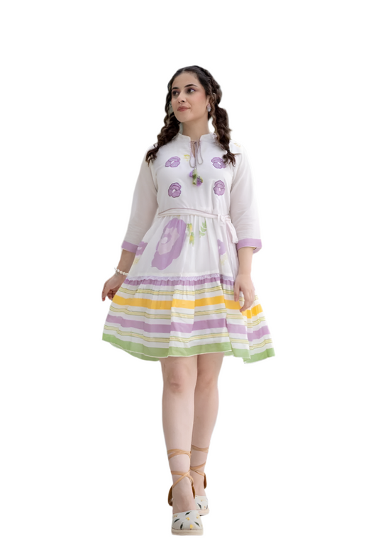 Pastel Floral & Striped Short Dress – Summer Chic
