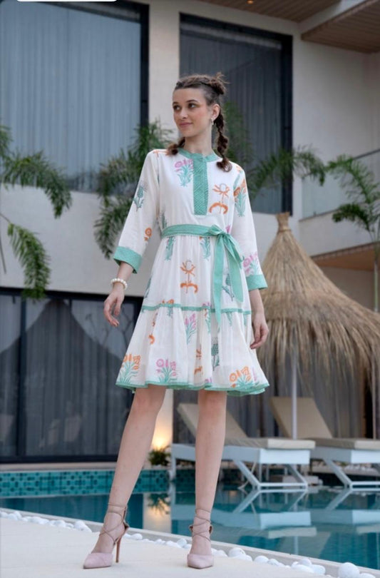 Elegant Hand-Block Printed Belted Dress