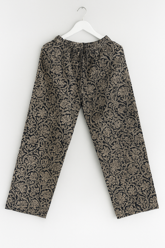 Women’s Black & Beige Handblock Printed Cotton Palazzo Pants – Ethnic Casual Wear