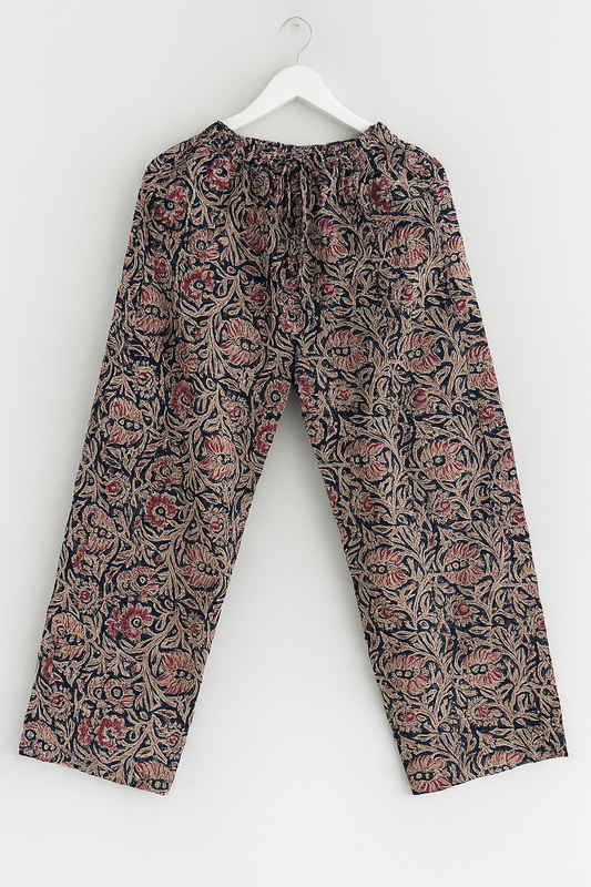 Handblock Kalamkari Cotton Plazo Pants for Women – Ethnic Floral Print, Comfortable Fit