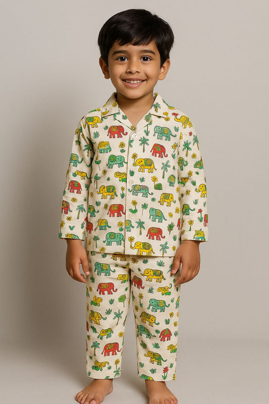 Kids’ Cotton Co-Ord Set with Elephant Print – Comfortable Nightwear & Loungewear for Boys and Girls