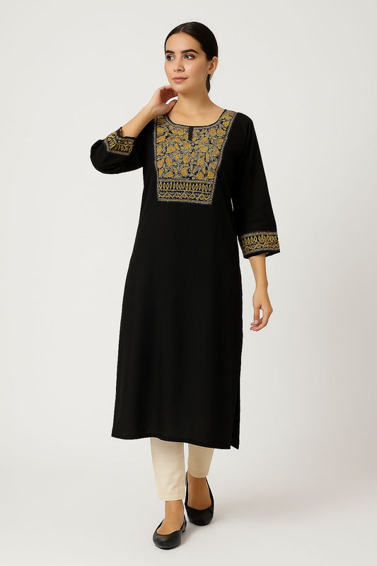 Women’s Black Cotton Short Kurti with Mandarin Collar & 3/4 Sleeves – Elegant Everyday Wear