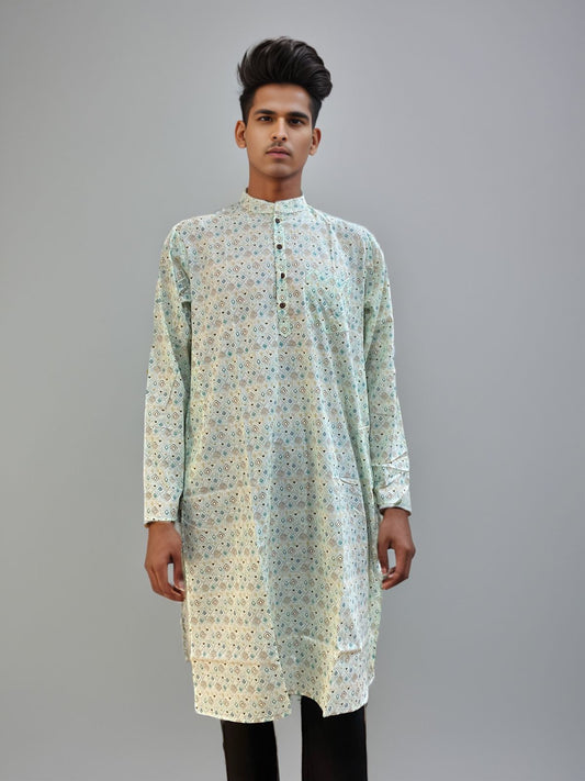 Men's Handblock Printed Long Cotton Kurta – Elegant Ethnic Wear