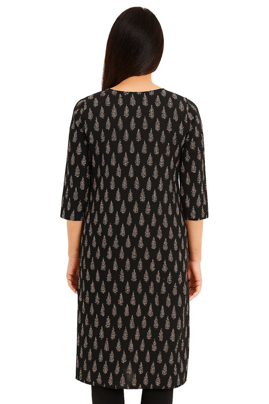 Black Cotton Printed Straight Kurti for Women – Elegant Leaf Motif | Office & Casual Wear