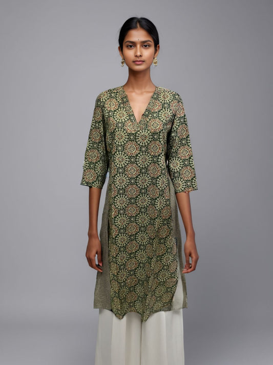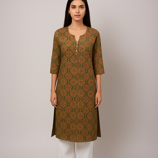 Premium Khadi Cotton Kurti with Printed Design – Daily & Office Wear