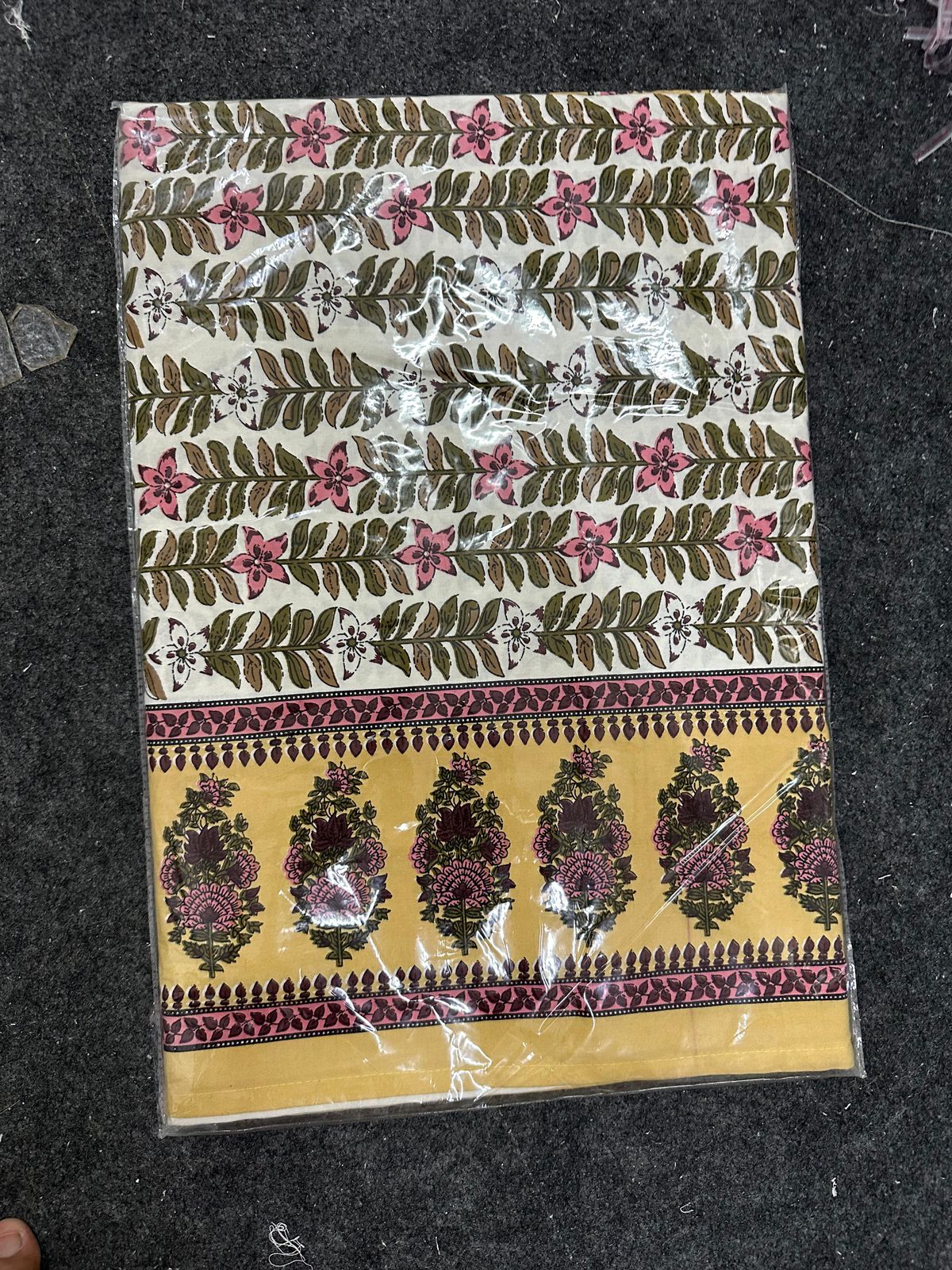Bring a touch of tradition and elegance to your home with this yellow cotton double bedsheet set, adorned with a beautiful floral block print design. Crafted from 100% pure cotton, the fabric is soft, breathable, and long-lasting, ensuring comfort and durability. With a large size of 100x108 inches, this bedsheet fits king-size beds perfectly. The set comes with 2 matching pillow covers, completing the coordinated look. Ideal for daily use, festive décor, or gifting, this bedsheet adds warmth and charm to any bedroom.