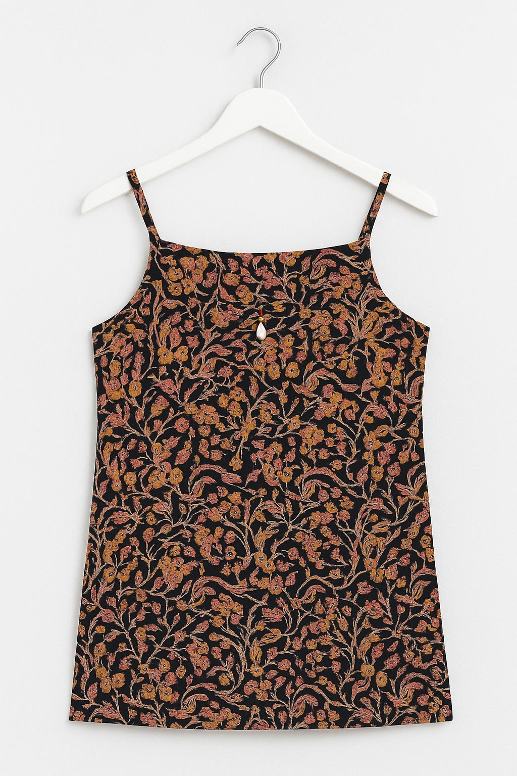 Black Cotton Sleeveless Kurti for Women – Floral Printed Summer Short Tunic Top