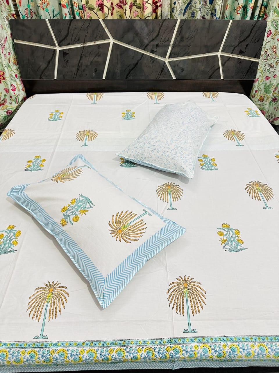 Block Print Bedsheet for Summer – Pink Floral with Pillow Covers (Fine Cotton)