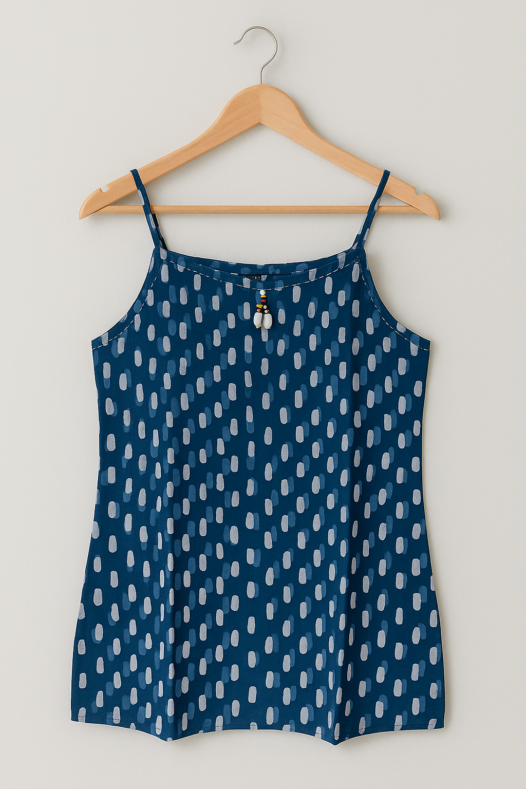 Beat the heat in style with this elegant blue cotton sleeveless kurti, designed with a modern hand block dotted print. The minimalist pattern combined with breathable cotton fabric makes it an ideal summer pick for daily wear, college, or casual outings. This lightweight tunic features a comfortable straight fit and delicate shoulder straps for an airy feel.
