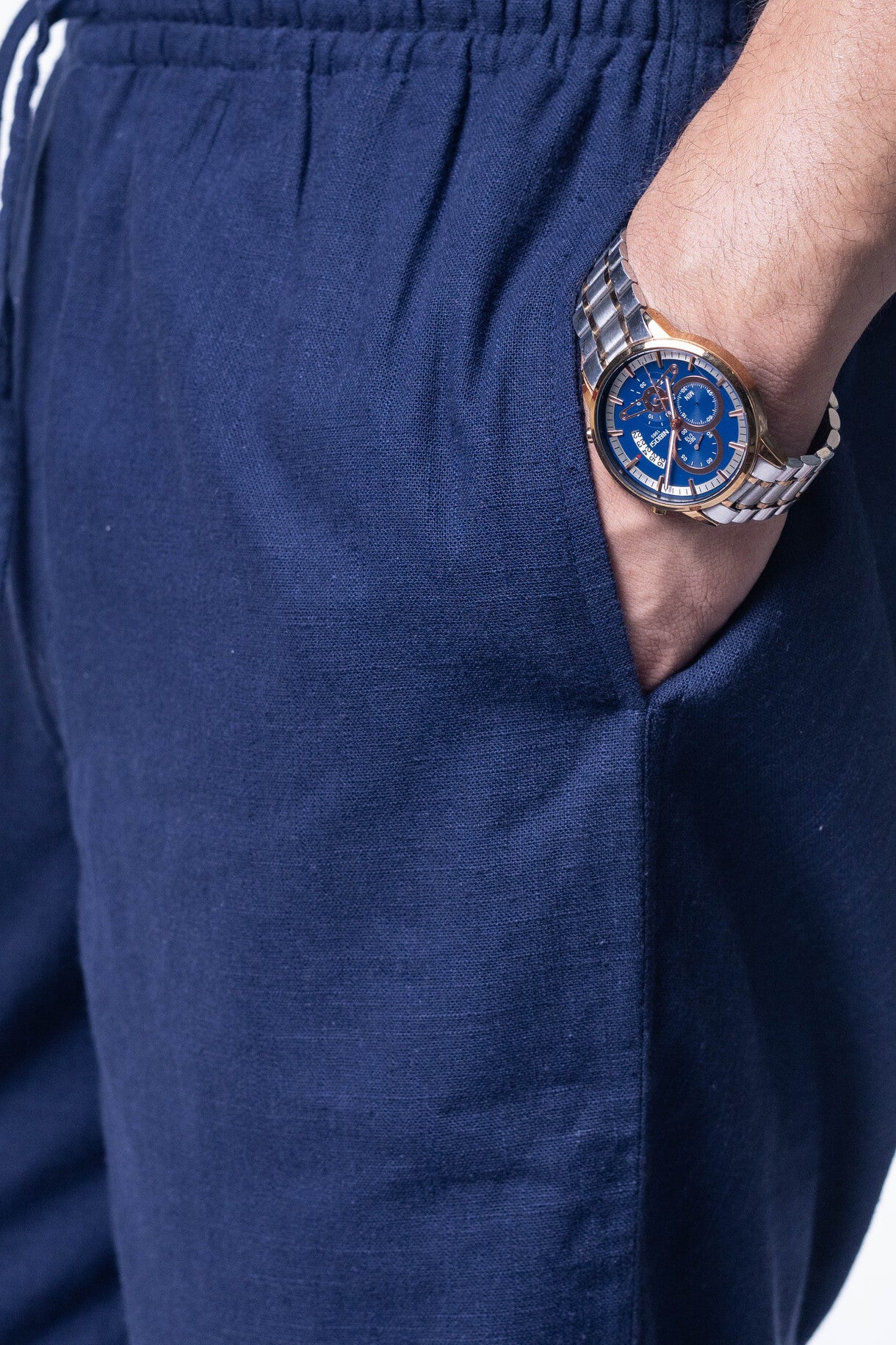 The tailored design of our blue khadi pants strikes the perfect balance between contemporary fashion and enduring charm. Elevate your everyday look by pairing them with a crisp white shirt or experiment with contrasting colors for a bolder statement.