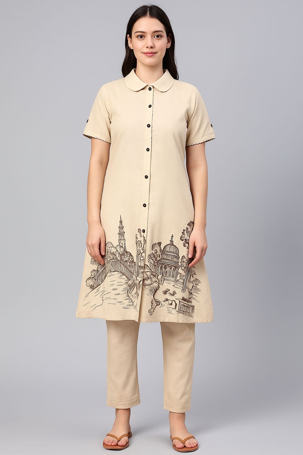 Cotton Co-ord Set with Hand-Drawn Architectural Print