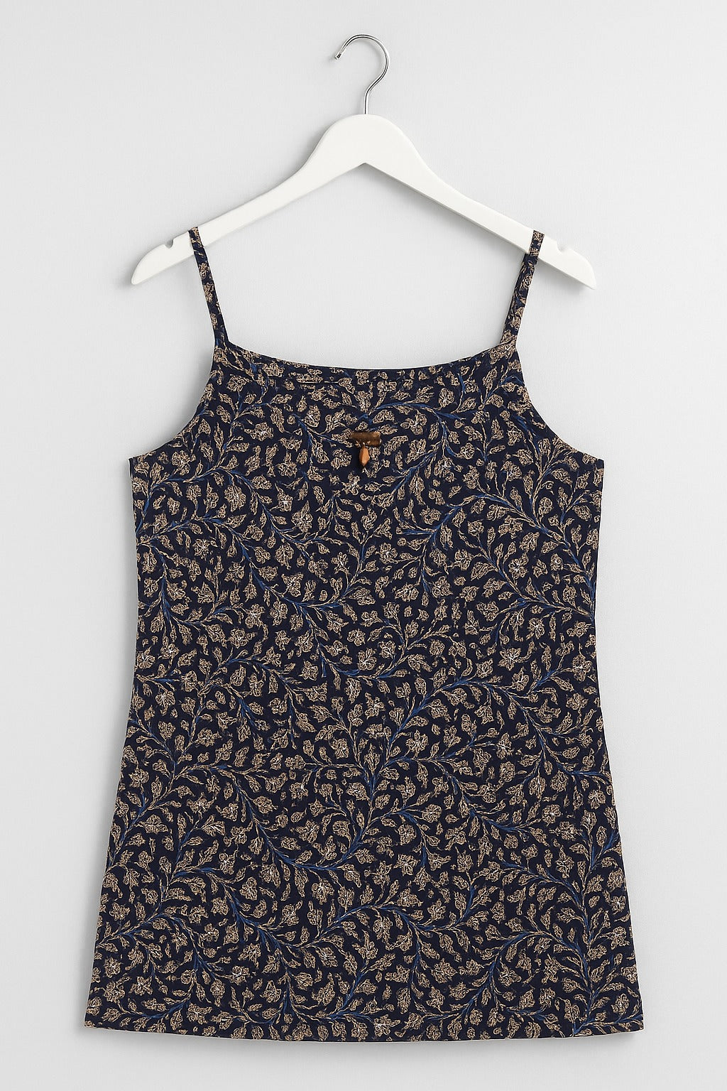 Elegant Navy Blue Cotton Sleeveless Kurti – Hand Block Printed Short Tunic for Women