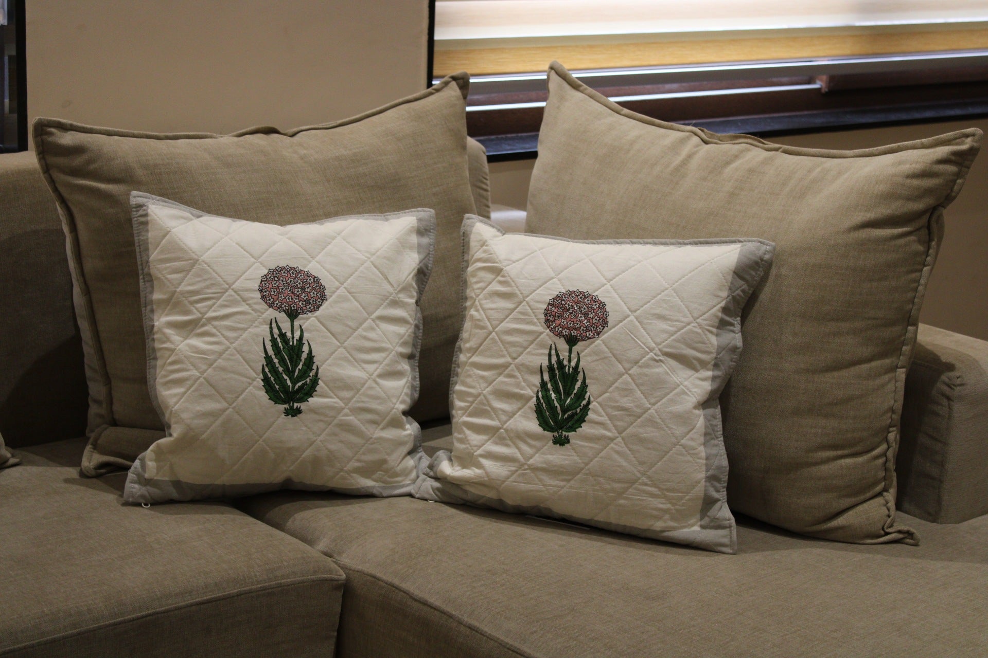 Floral Embroidered Cushion Covers Quilted
