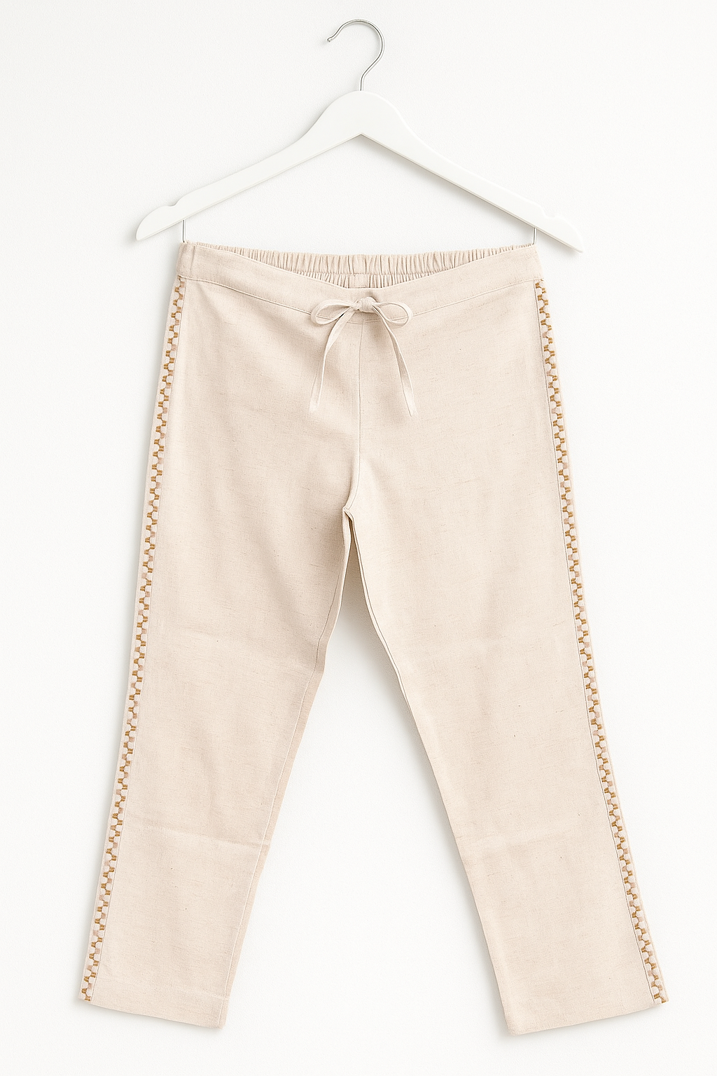 Hand-Embroidered Khadi Cotton Co-ord Set for Women – Beige Sustainable Ethnic Two-Piece Outfit
