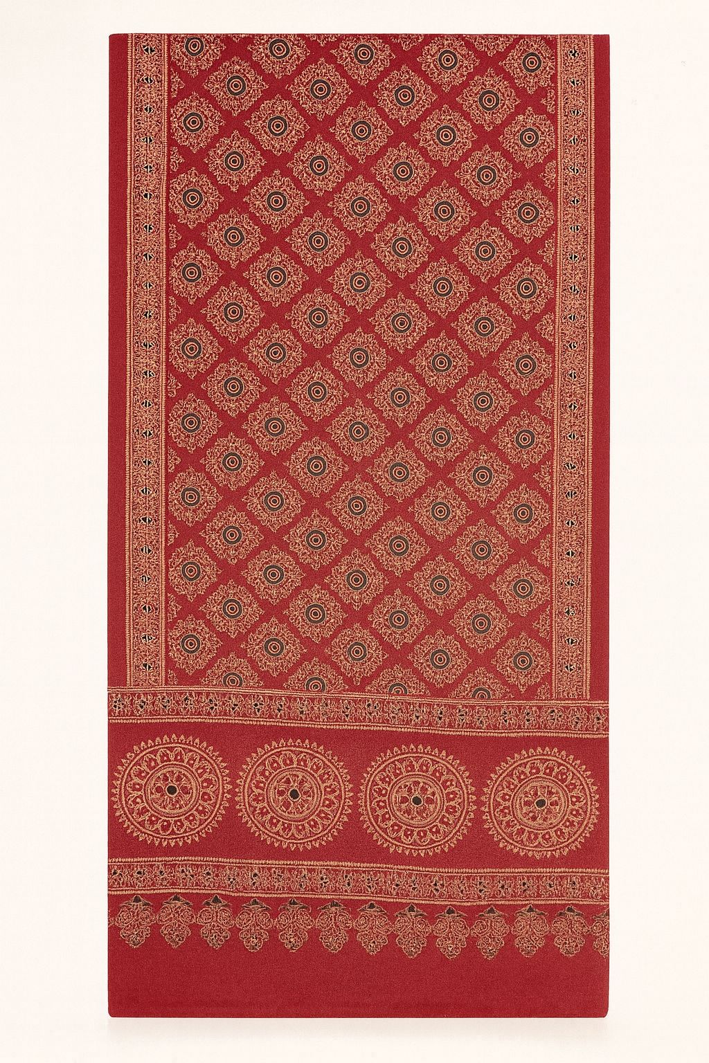 Handcrafted Red Ajrakh Silk Stole | Traditional Circular