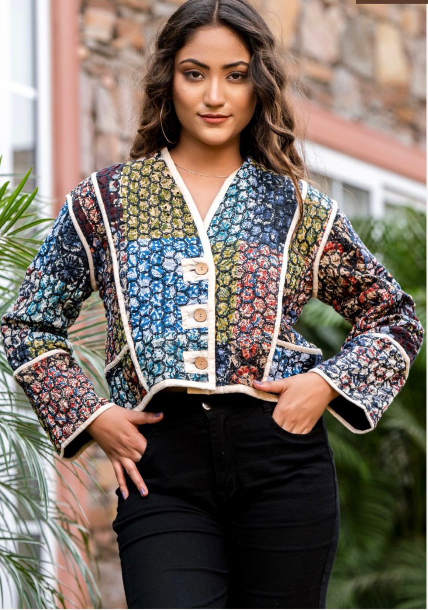 Perfect for layering over casual outfits or adding a pop of color to your evening wear, the Kaleidoscope Charm Quilted Jacket is a statement piece that combines tradition with modern style. Pair it with your favorite jeans or a chic dress to showcase your vibrant personality and fashion-forward sensibility. Embrace the charm and color of this stunning jacket and make every outfit unforgettable