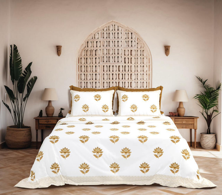 Ideal for daily use, guest bedrooms, festive décor updates, or elegant gifting, this cotton bedsheet combines durability, comfort, and timeless design for everyday luxury.