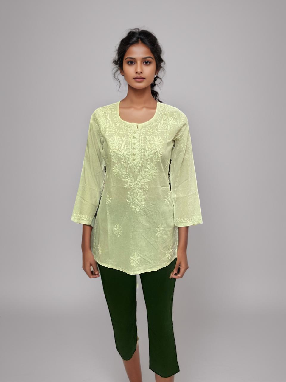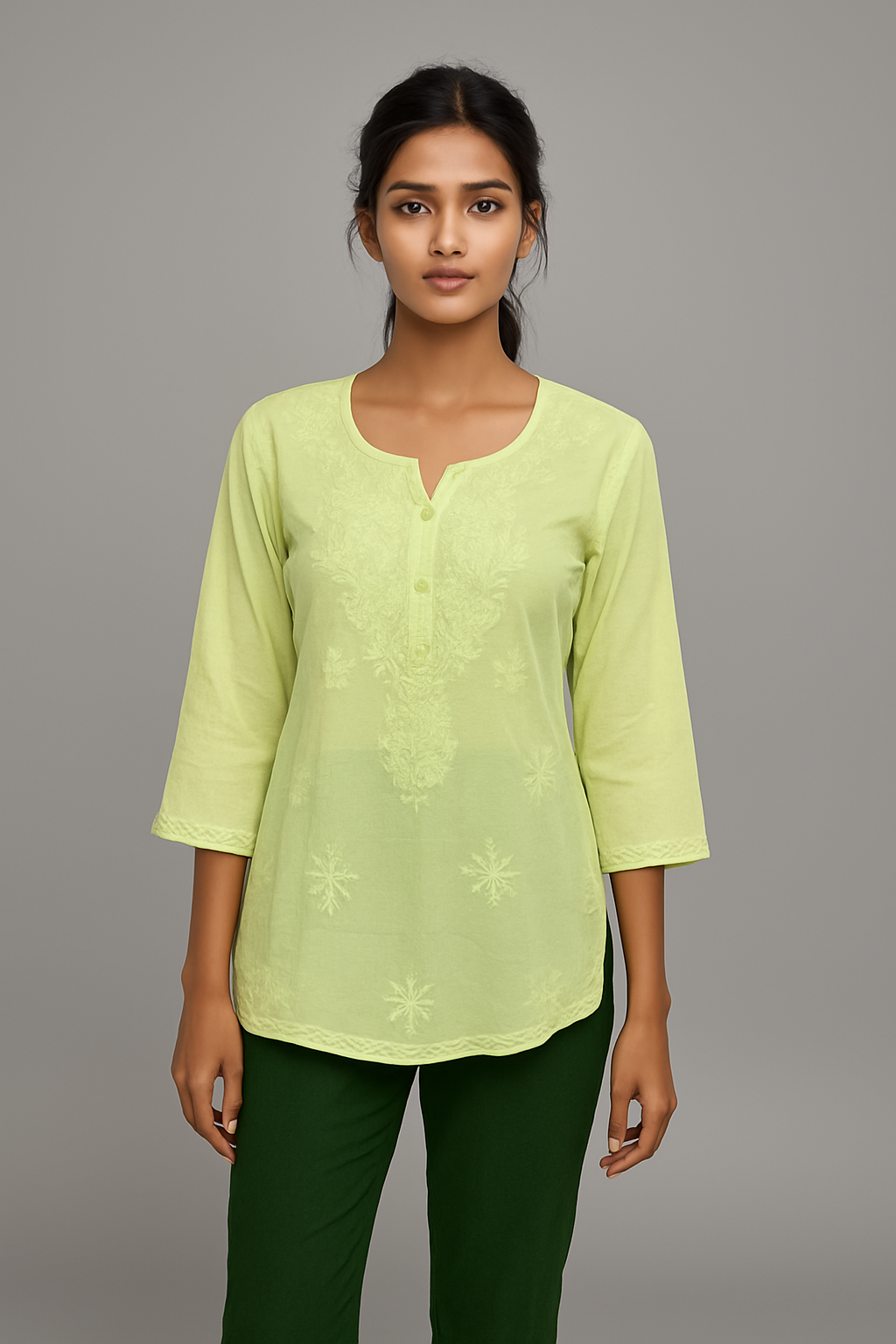 Lime Green Chikankari Short Kurti – Elegant Everyday Charm