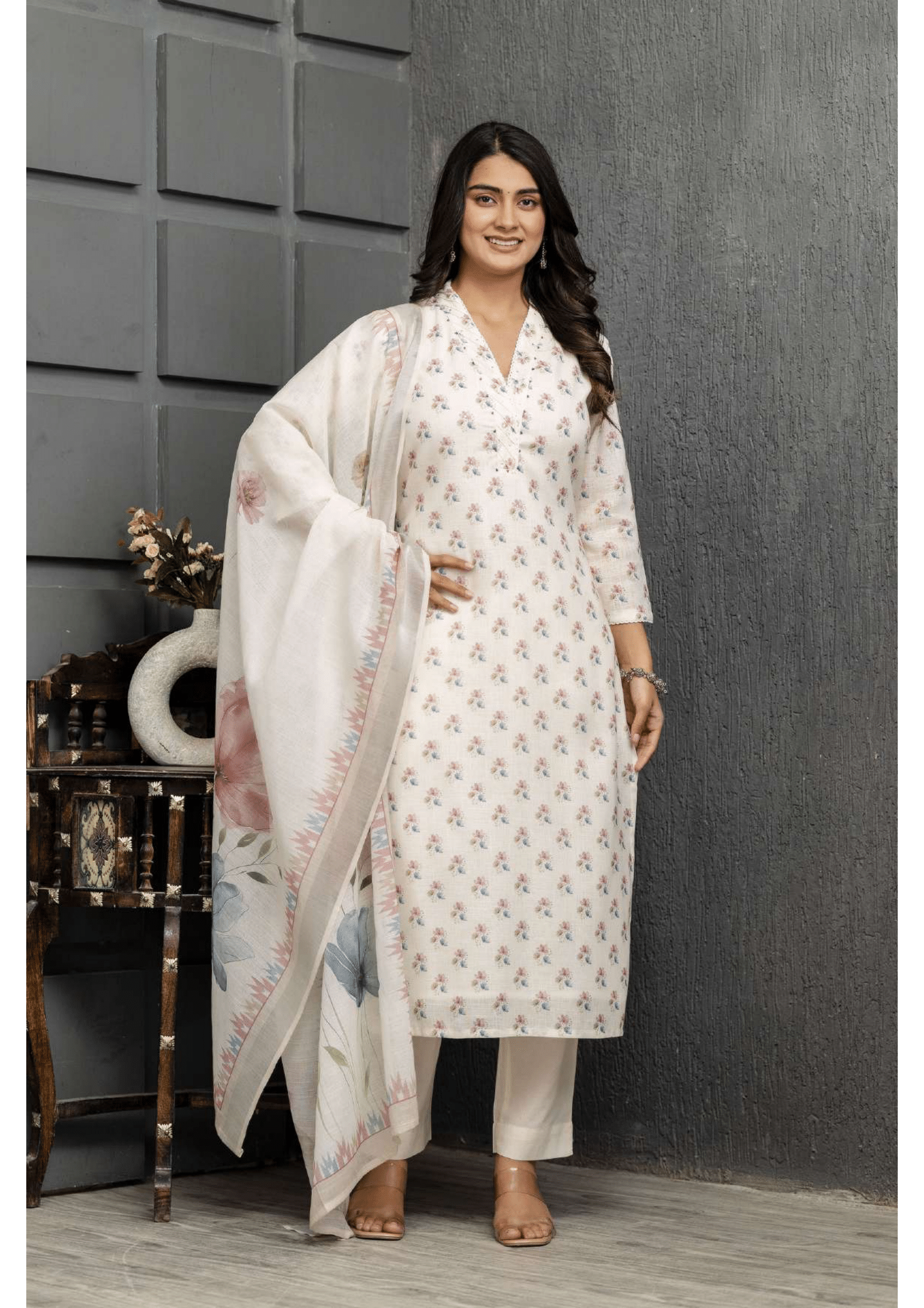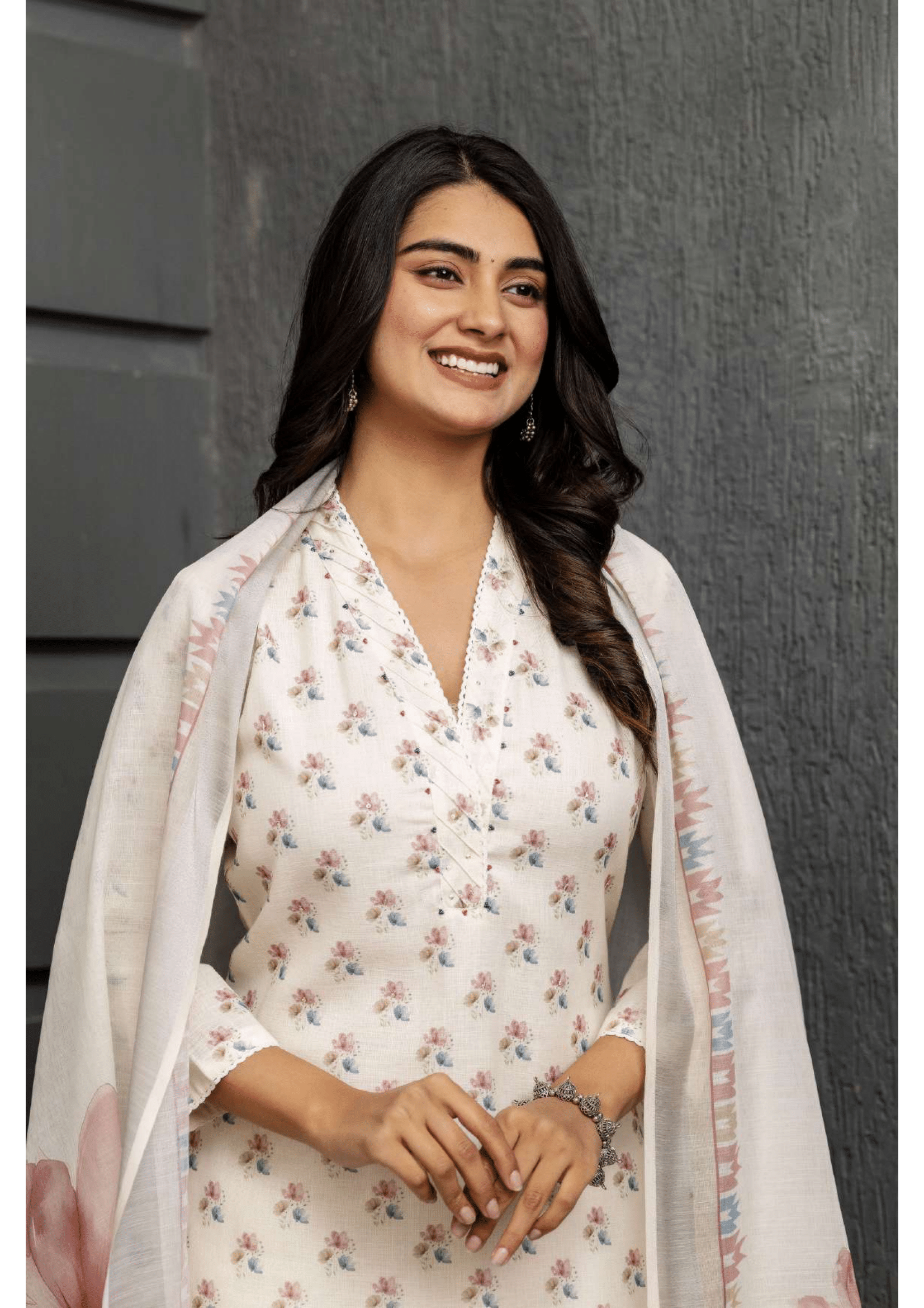 Linen Blossom Kurti Pant Dupatta Set | Natural Fab | Premium Linen Ethnic Wear for Women