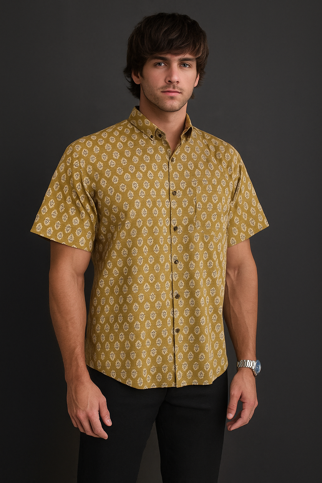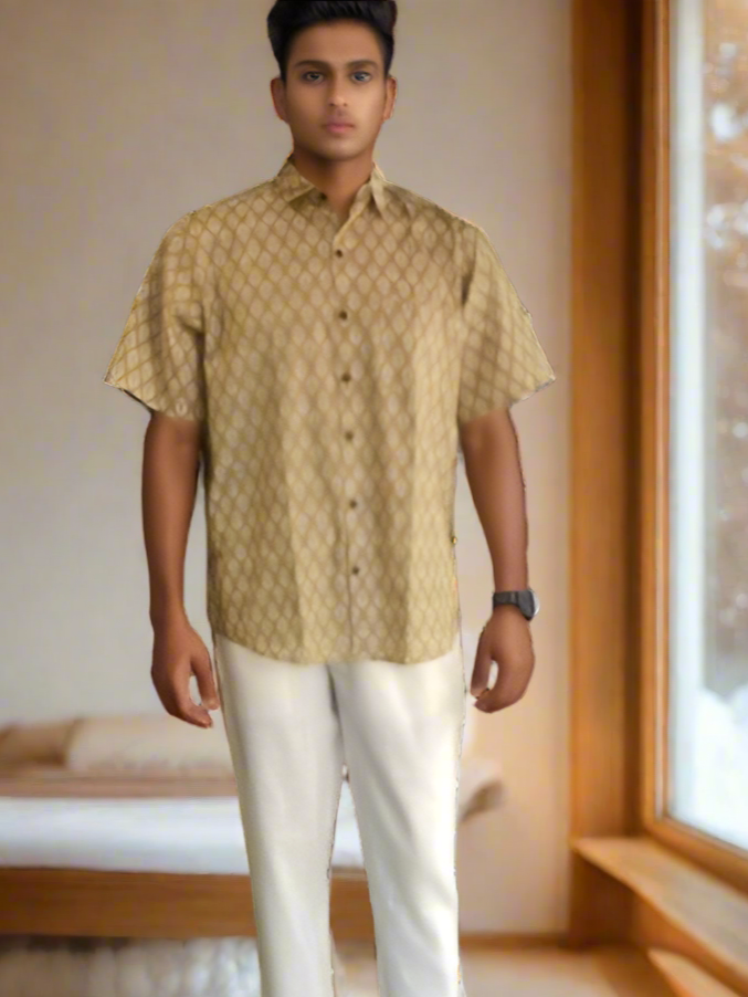 Men’s Ethnic Block Print Cotton Shirt – Earthy Elegance by Natural Fab