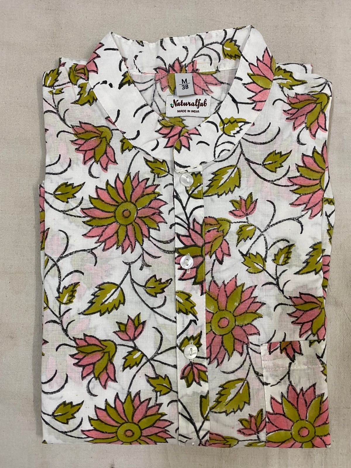 Elevate your festive and ethnic style with this handcrafted long kurta made from breathable cotton. Featuring intricate handblock floral prints in soft pink and mustard yellow on a classic cream base, this kurta brings together traditional charm and modern elegance. Designed with a mandarin collar and full sleeves, it’s perfect for daytime celebrations, pujas, or cultural gatherings. Pair it with cream churidar or trousers for a refined and graceful look. Made with care, made for comfort.