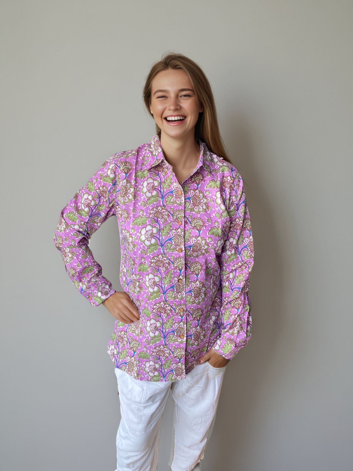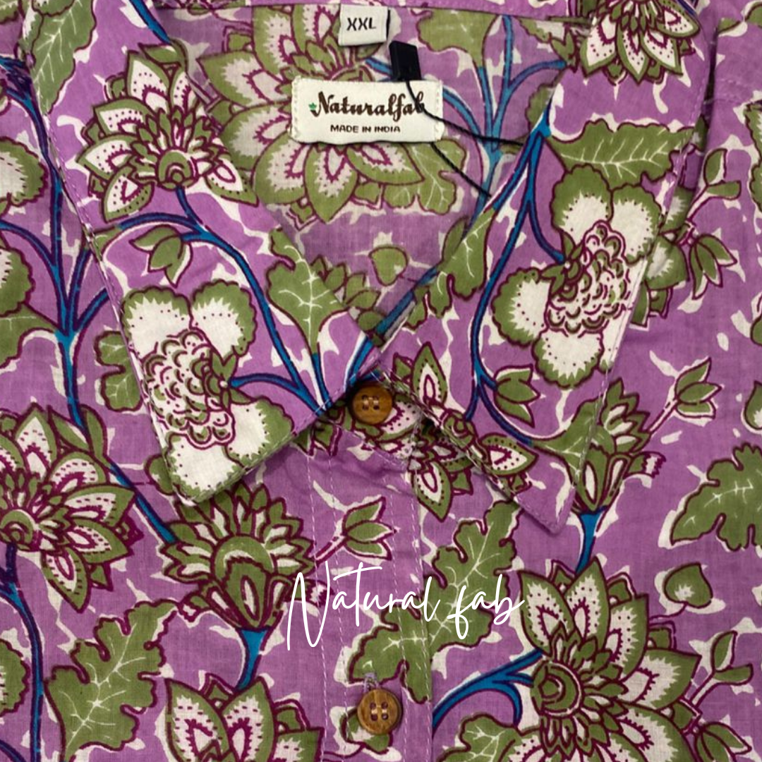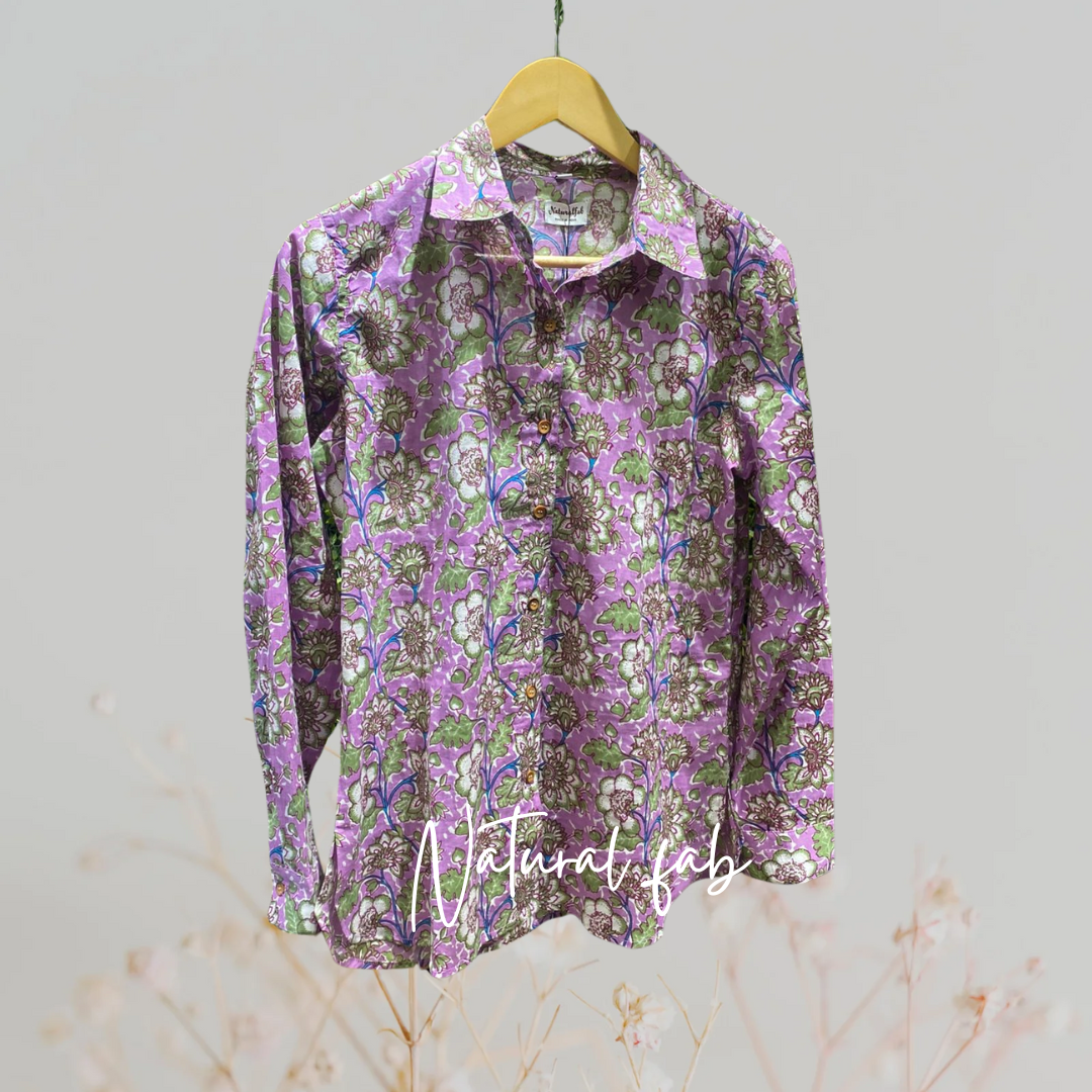 Elevate your everyday style with this vibrant pink floral handblock printed shirt for women from Natural Fab. Made with 100% premium cotton, this shirt is perfect for summer and offers a breathable, skin-friendly feel all day long. The intricate floral patterns are handcrafted using eco-friendly dyes and traditional Indian printing techniques, making it a timeless piece for every wardrobe.