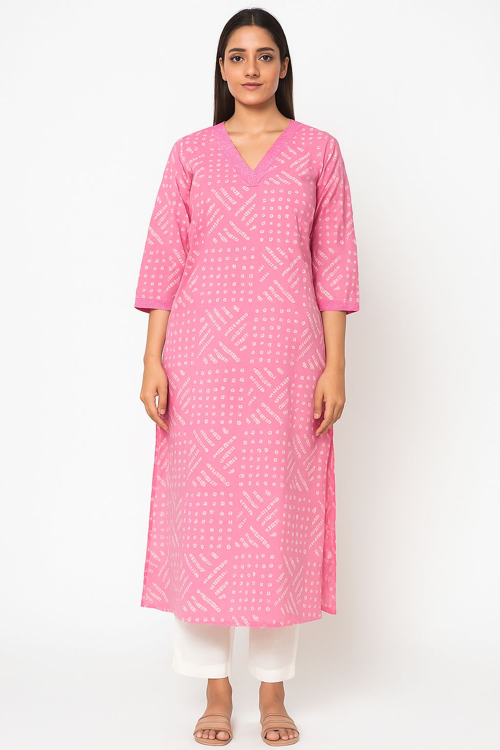 Step into timeless elegance with this beautiful pink cotton kurta set featuring traditional Bandhani print. Designed for modern Indian women, this kurta set offers breathable comfort, 3/4th sleeves, and a flattering straight fit – perfect for casual outings, office wear, or festive occasions. Crafted with soft cotton fabric and minimalistic prints, this ethnic set ensures both style and all-day ease. Pair it with juttis or flats for a complete look.