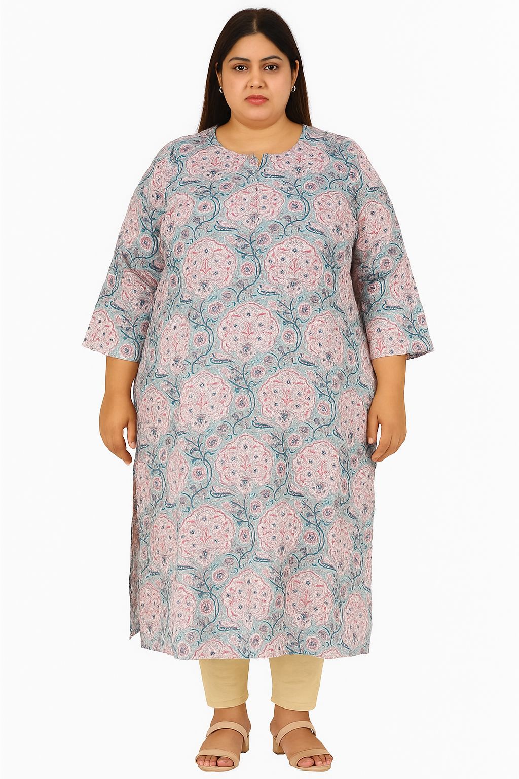 Plus Size Cotton Straight Kurta for Women | Elegant Floral Printed Kurti for Daily & Office Wear