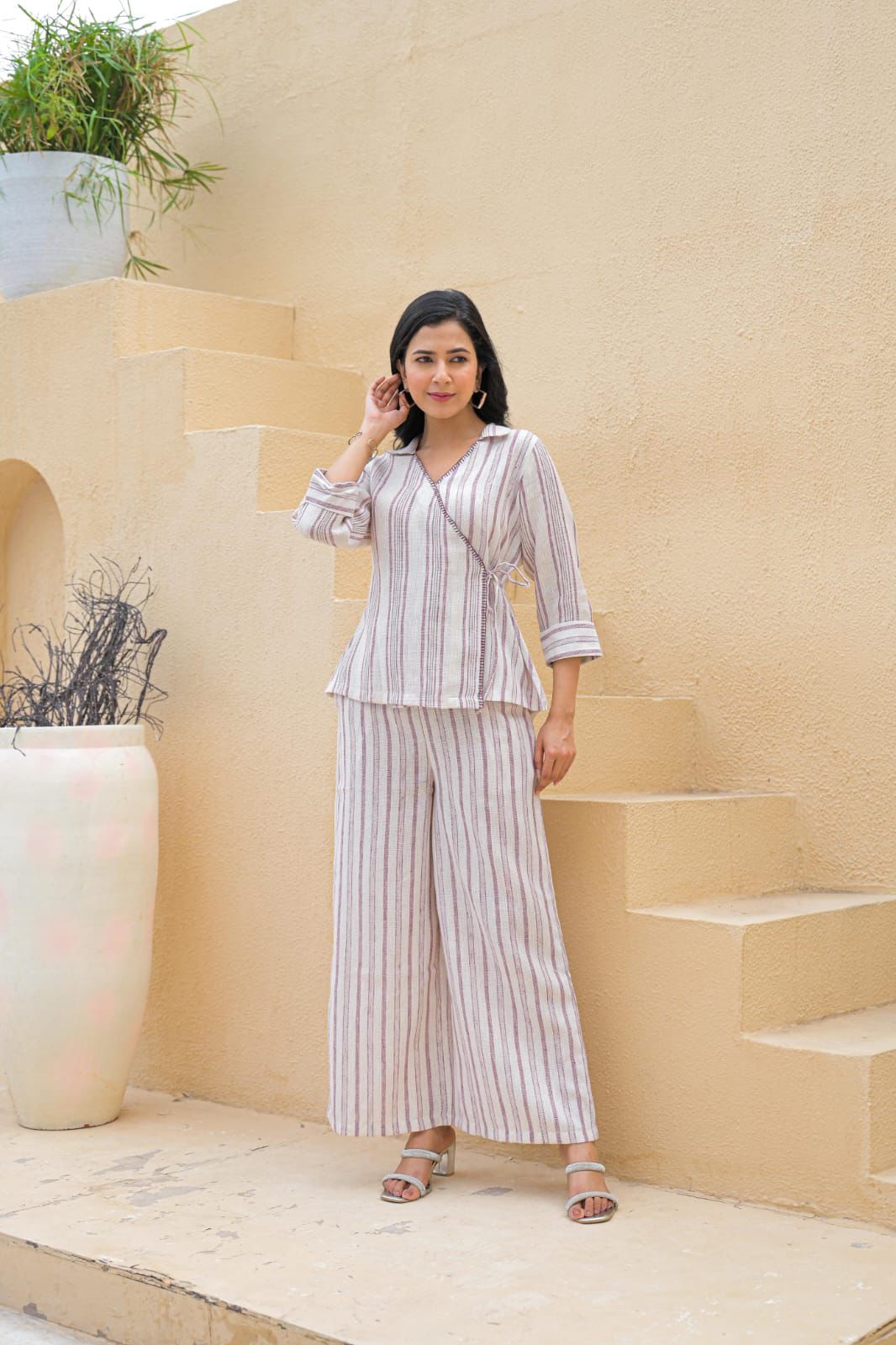 This co-ord set blends timeless stripes with contemporary design, offering a relaxed yet chic statement for the modern wardrobe