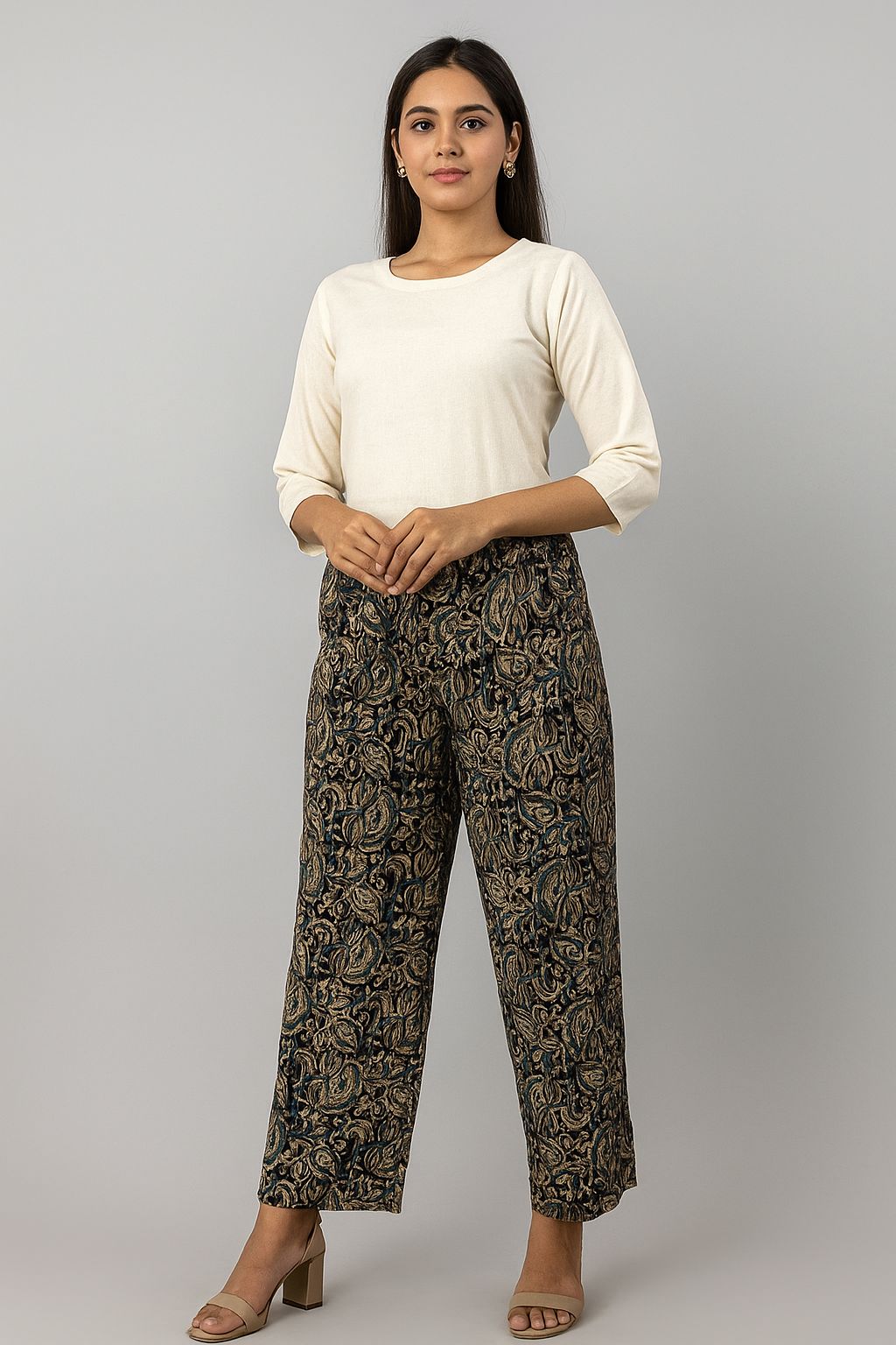 Women’s Black & Beige Handblock Printed Cotton Palazzo Pants – Ethnic Casual Wear