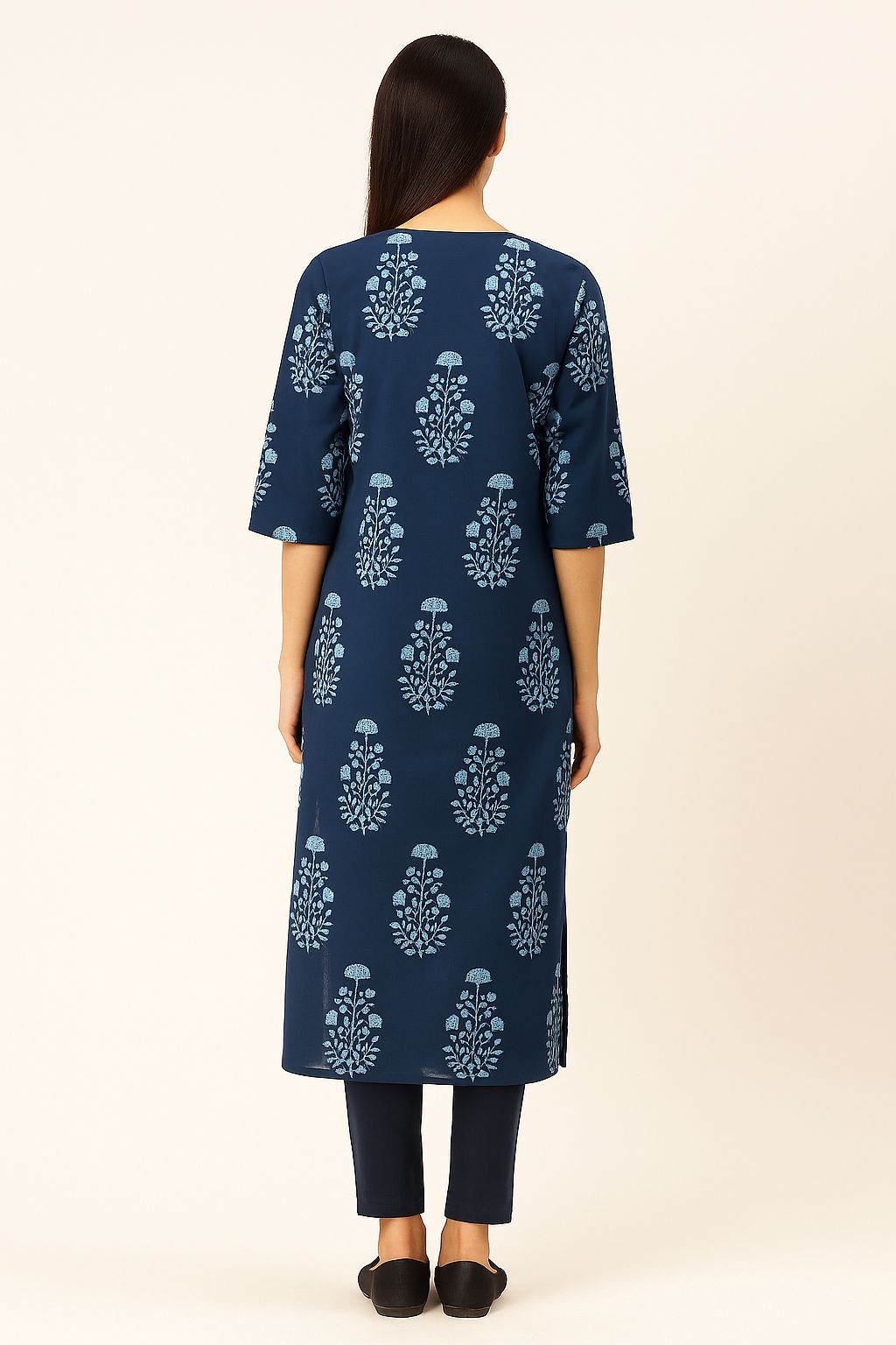 Step into effortless elegance with this blue cotton printed straight kurti for women, crafted from soft and breathable cotton fabric. Featuring a stylish V-neckline with button detailing and comfortable 3/4 sleeves, this kurti offers the perfect balance of traditional charm and modern simplicity. The all-over floral block-inspired print enhances its ethnic appeal, while the straight silhouette ensures a flattering fit for every body type. Pair it with leggings, palazzos, or pants for office wear, casual outings, or festive gatherings.