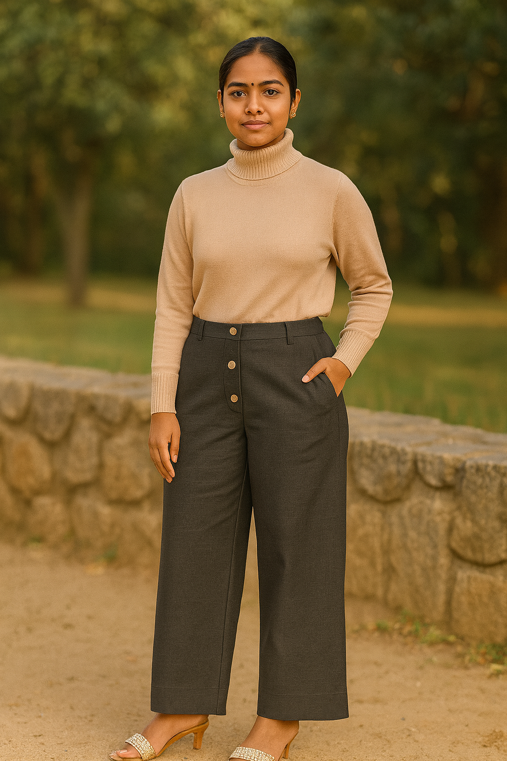 The neutral grey shade makes them versatile and easy to pair with kurtis, tunics, shirts, or crop tops, making them perfect for office wear, casual outings, festive gatherings, or everyday styling. Lightweight, breathable, and eco-friendly, these palazzos are a must-have wardrobe essential.
